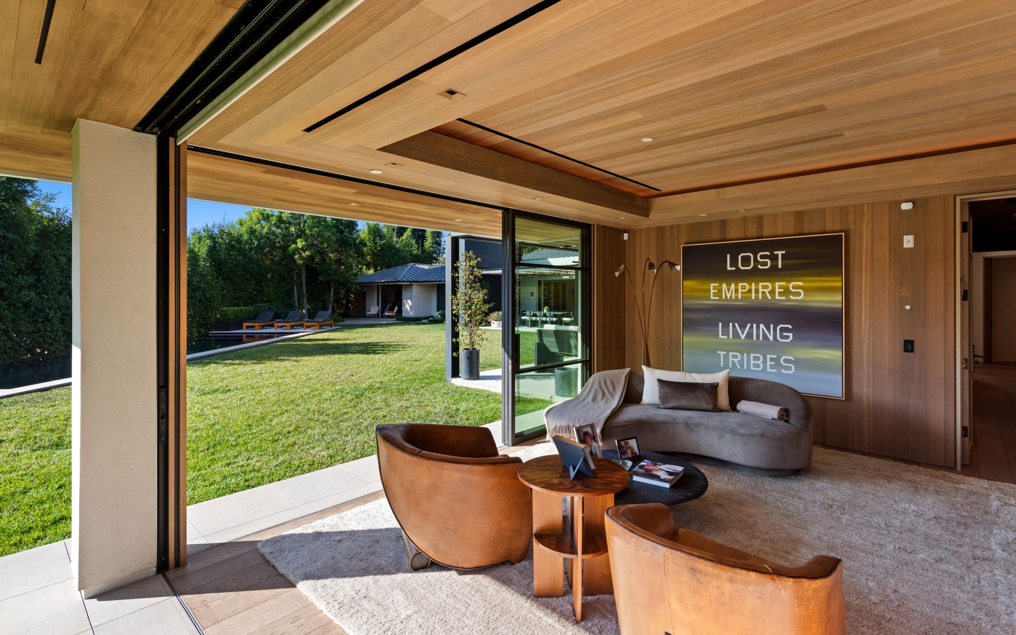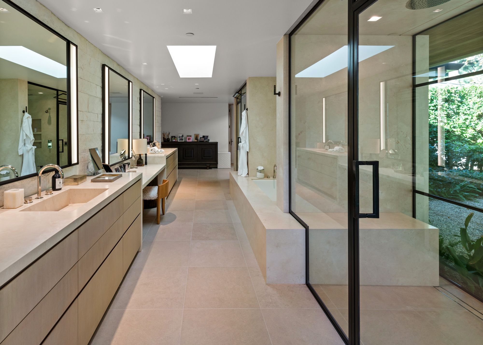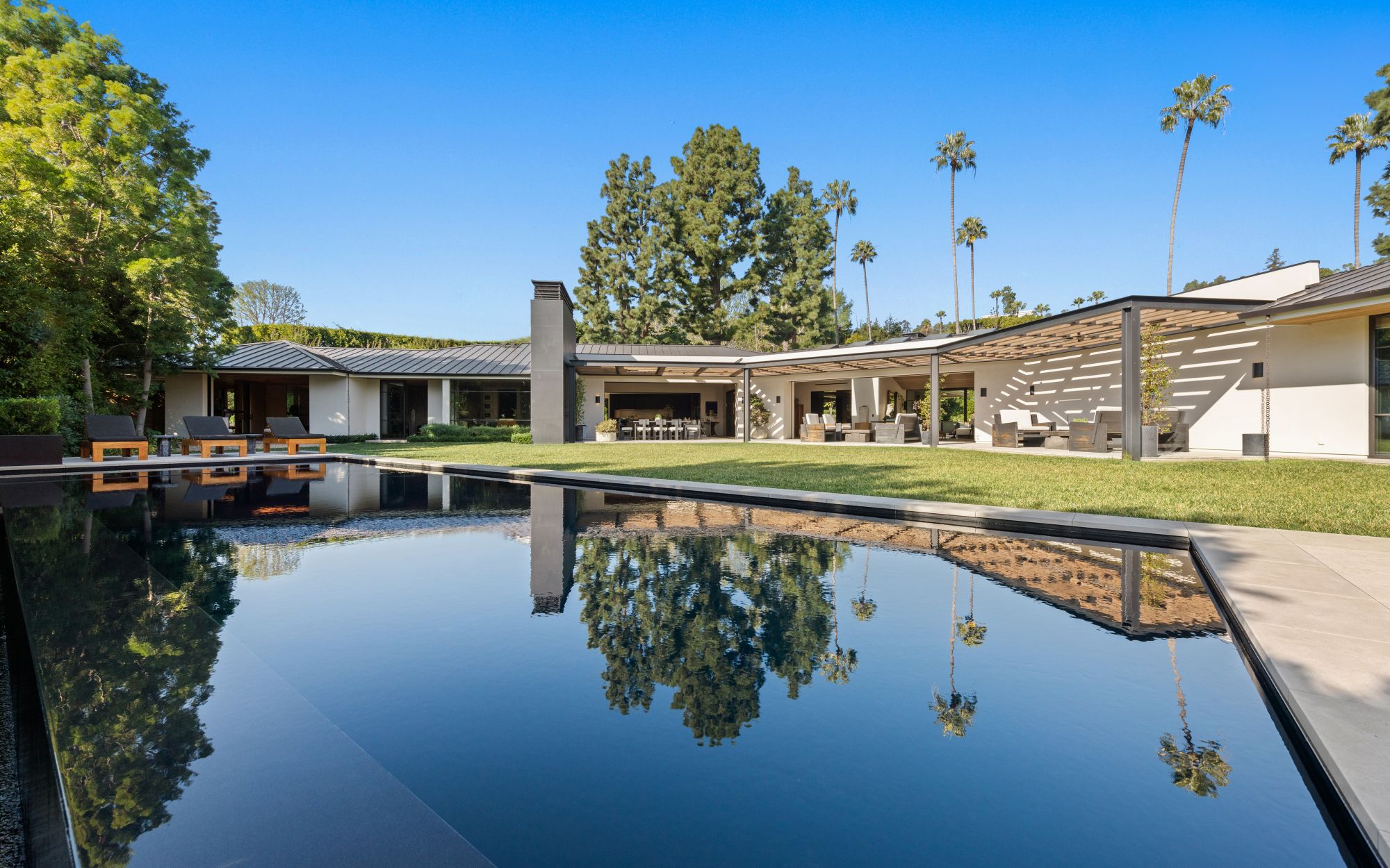 An embodiment of architecture as art that is to be experienced and lived in. This just completed masterpiece physically expresses formal yet relaxed grandeur with seamless indoor-outdoor connectivity showcasing exquisite elegant and luxurious detailing absolutely everywhere. The 9300 square foot single story residence is nestled on nearly an acre of totally private park like grounds in the most prime estate section of Beverly Hills. This bespoke residence is constructed with a soft sophisticated palate of decadent materials such as hand combed limestone, plaster walls, custom white oak millwork, rare marbles and walls of steel and glass that disappear at the touch of a button. The media room walls are enveloped in cashmere and the dining room features sumptuous silk ceilings and walls. There are 5 bedroom suites each with its own secluded garden, 8 bathrooms, library, gym, media room and a 5 car garage. This is truly one of the greatest homes to ever become available. It is the ultimate expression of sophisticated and luxurious living.