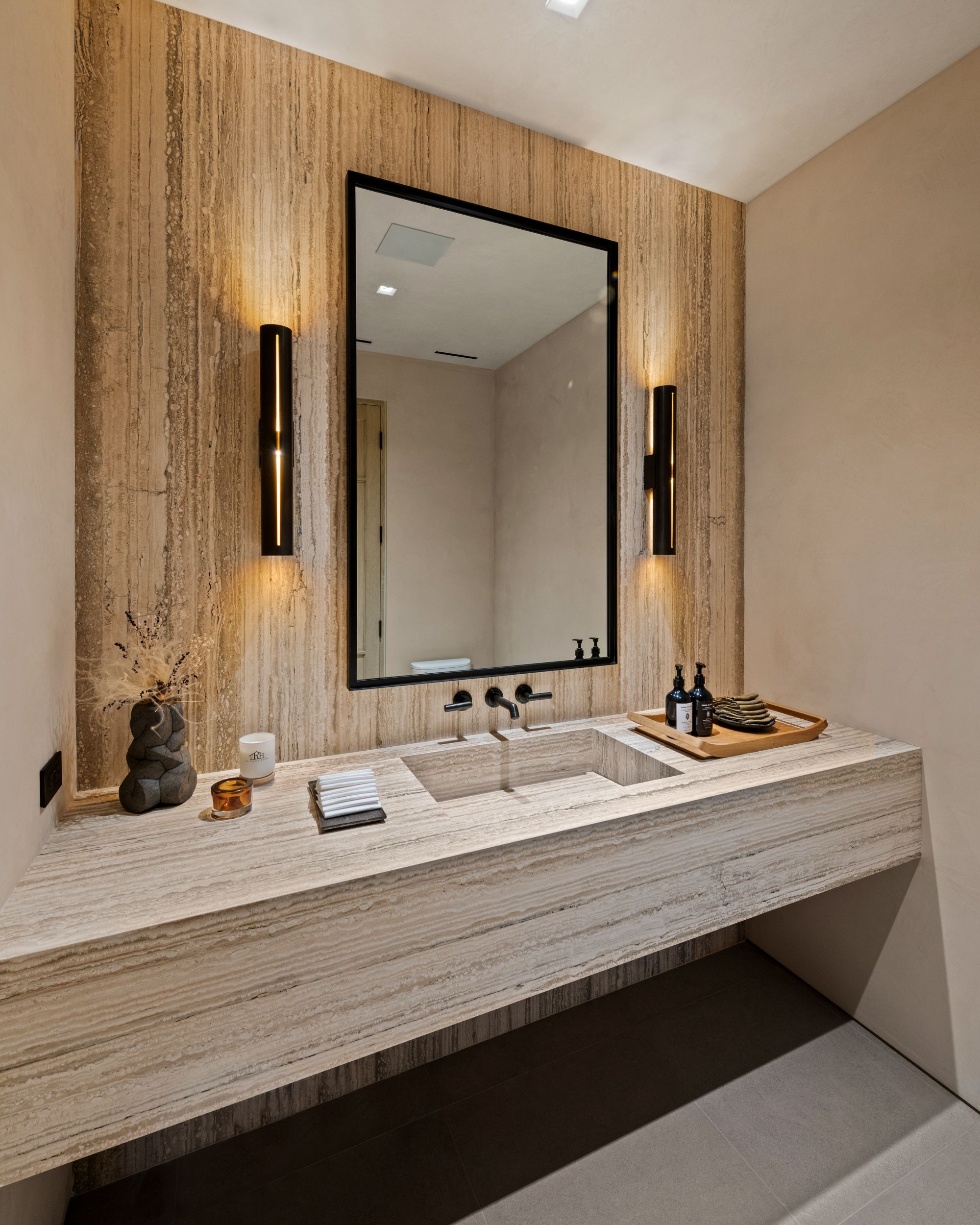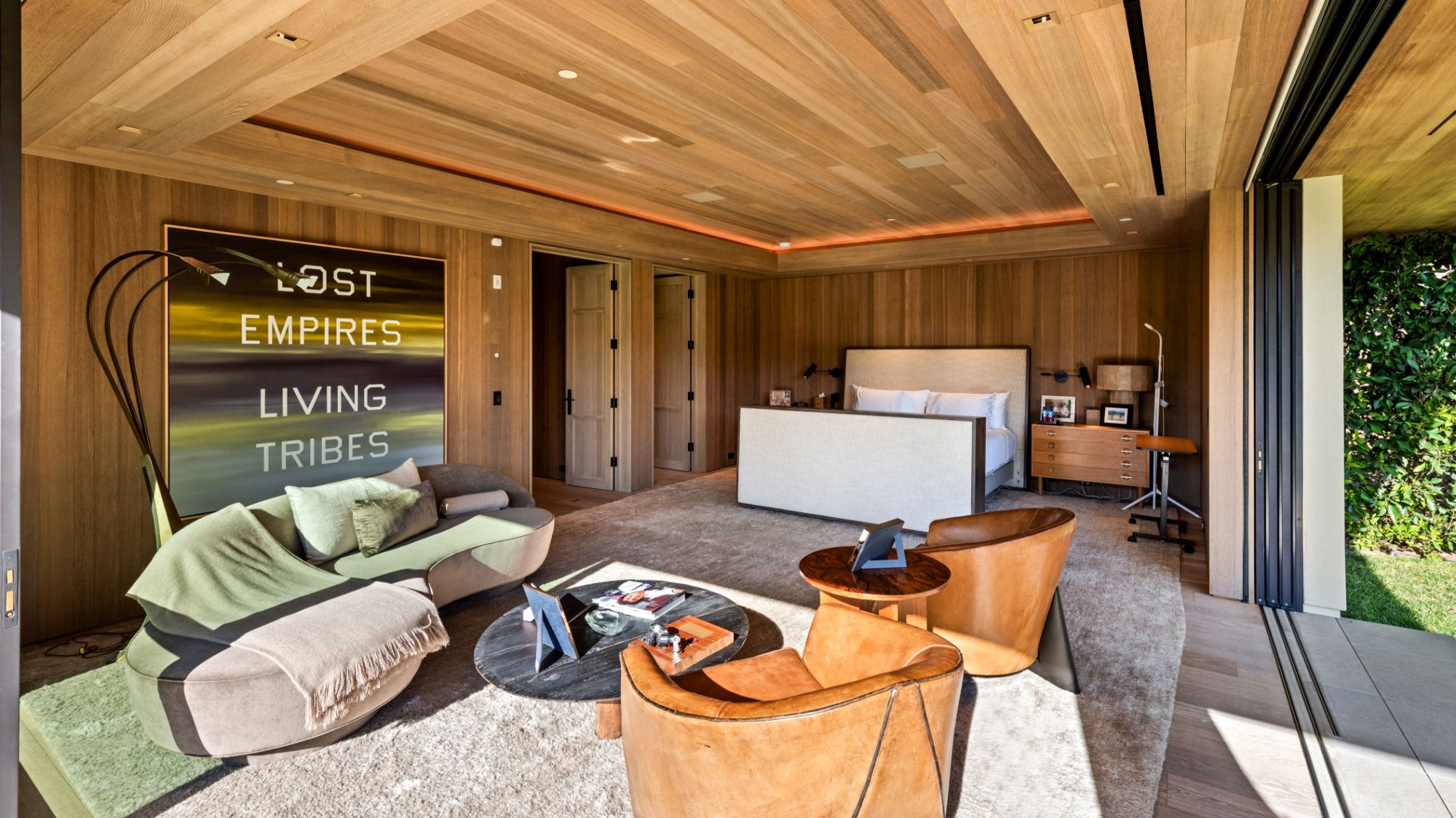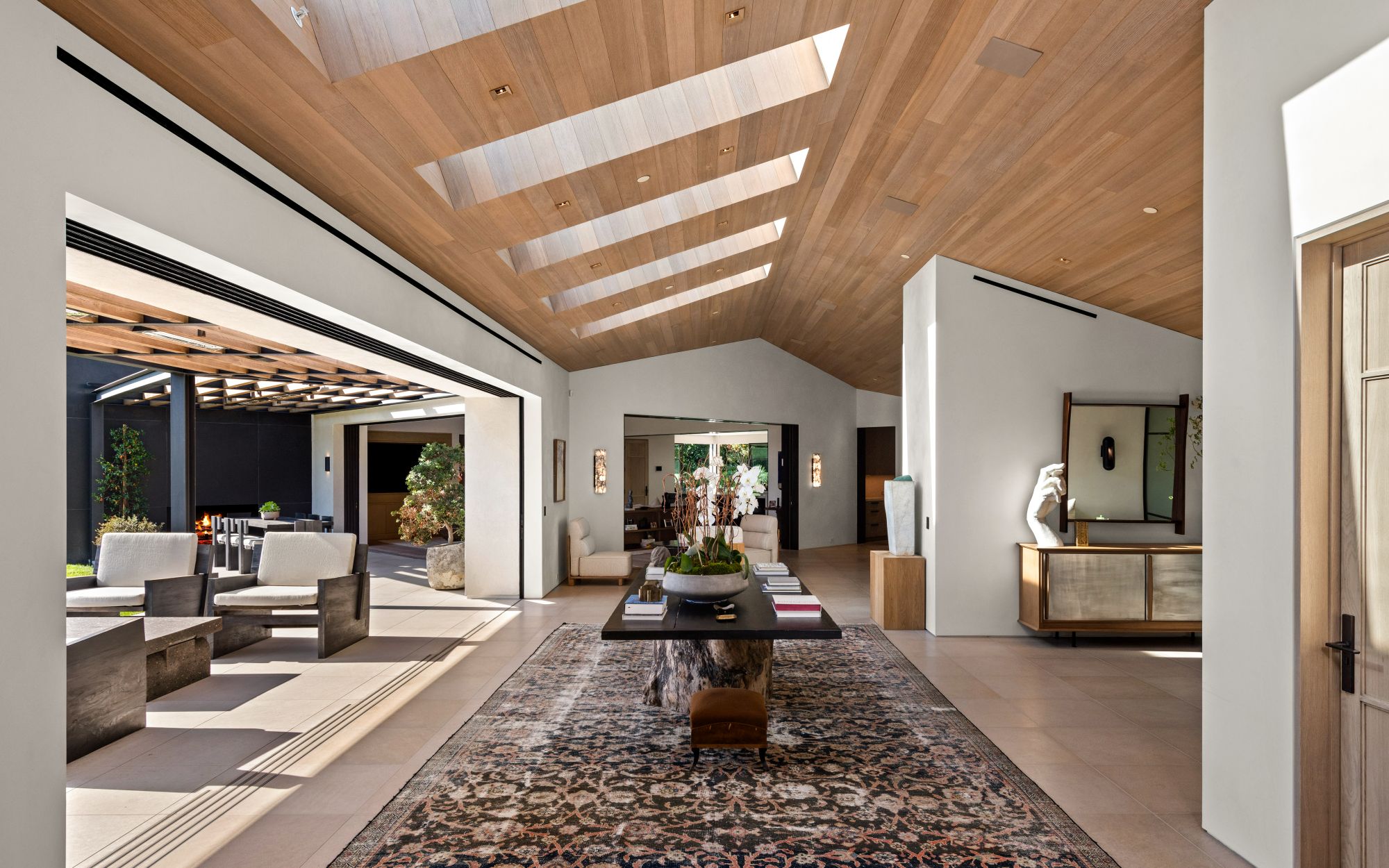 An embodiment of architecture as art that is to be experienced and lived in. This just completed masterpiece physically expresses formal yet relaxed grandeur with seamless indoor-outdoor connectivity showcasing exquisite elegant and luxurious detailing absolutely everywhere. The 9300 square foot single story residence is nestled on nearly an acre of totally private park like grounds in the most prime estate section of Beverly Hills. This bespoke residence is constructed with a soft sophisticated palate of decadent materials such as hand combed limestone, plaster walls, custom white oak millwork, rare marbles and walls of steel and glass that disappear at the touch of a button. The media room walls are enveloped in cashmere and the dining room features sumptuous silk ceilings and walls. There are 5 bedroom suites each with its own secluded garden, 8 bathrooms, library, gym, media room and a 5 car garage. This is truly one of the greatest homes to ever become available. It is the ultimate expression of sophisticated and luxurious living.